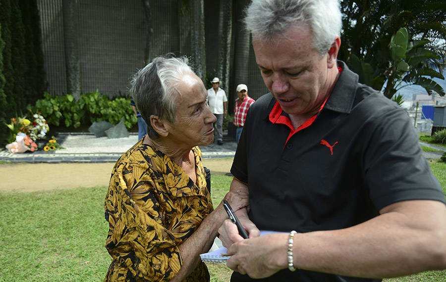 РАУЛЬ АРБОЛЕДА / AFP / Getty Images Джон Хайро Веласкес, также известный как «Попай», подписывает банкноту для женщины у могилы колумбийского наркобарона Пабло Эскобара на кладбище Монтесакро в Медельине.