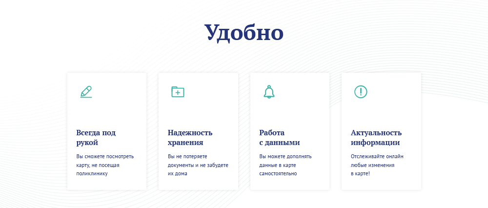 Из первого утверждения плавно вытекает следующее: время изучения истории болезни пациента значительно сокращается, а оказание помощи выполняется максимально оперативно. Так происходит благодаря отсутствию длительной процедуры поиска бумажного буклета по картотеке регистратуры.