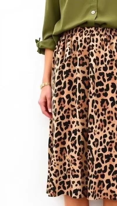 - «Яблоко»: Избегайте леопардовых топов и платьев с облегающим силуэтом. Отдайте предпочтение леопардовым юбкам или брюкам.