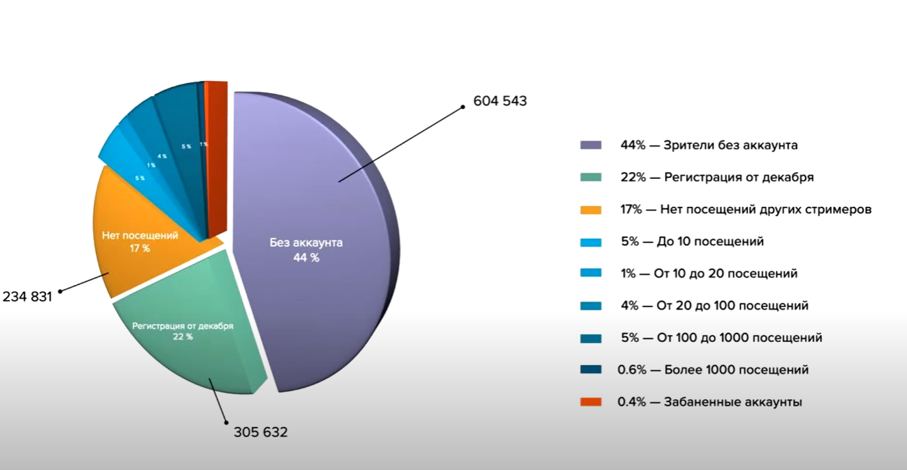 - По словам Мокривского, 44% неавторизованных зрителей – это очень много. Сайты, определяющие накрутку, считают подозрительными стримы, где неавторизованных пользователей хотя бы 20%.