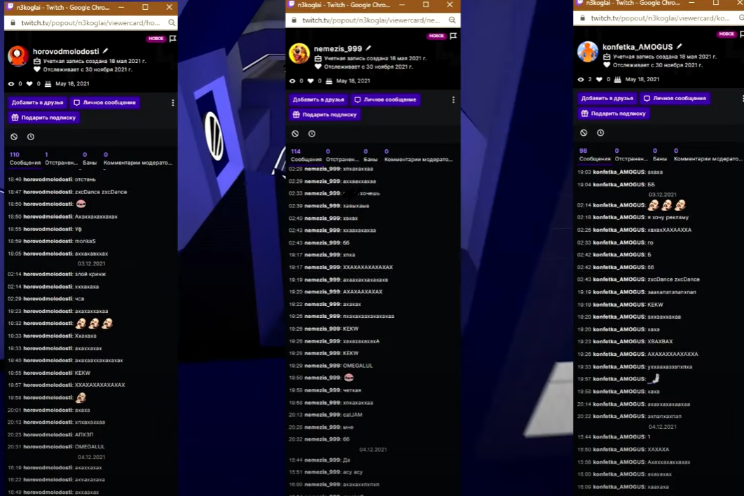 - Для накрутки онлайна и активности в чате использовалась база аккаунтов, созданная в сентябре 2021-го. Эти боты смотрели только стримы тех, кто входит в Pardonte или Zavod.
