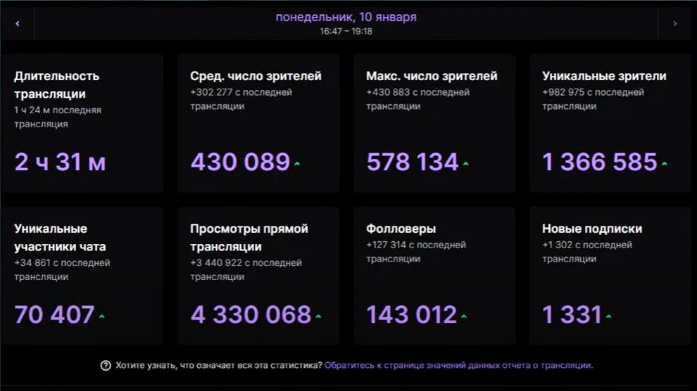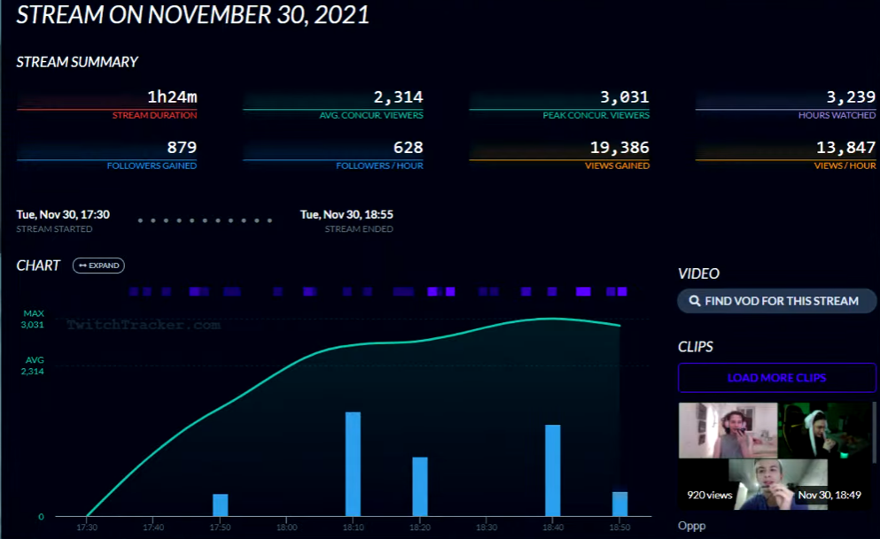 Также Мокривский рассматривает рекордный стрим Некоглая, во время которого был поставлен рекорд онлайна – 600 тысяч зрителей. Статистику этого стрима из дашборда Twitch потом выложил сам Некоглай, и это помогло расследованию.