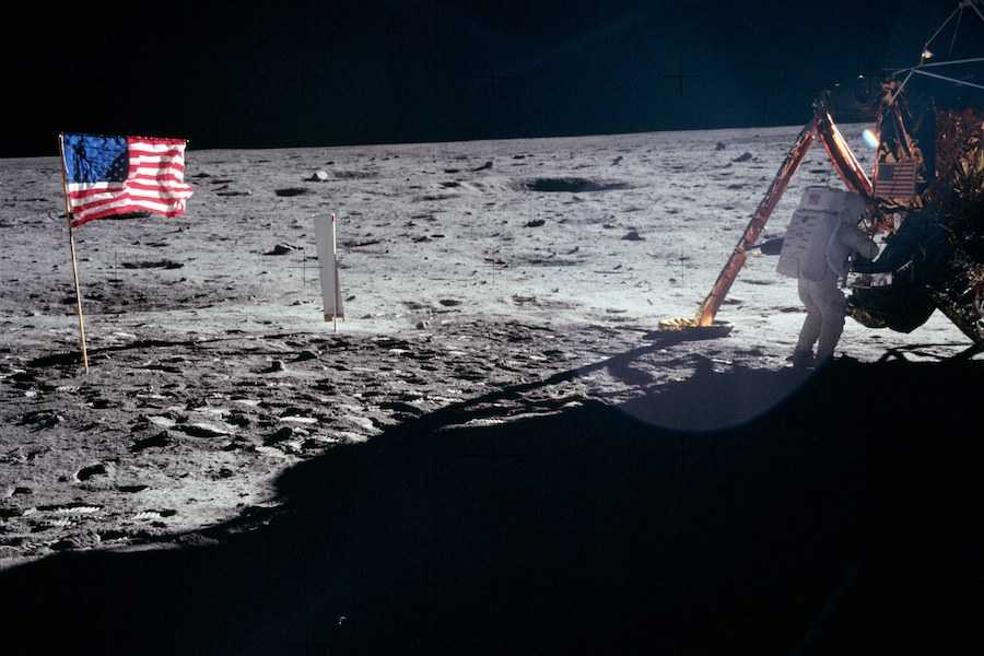 Когда американские астронавты привезли свои первые фотографии с поверхности Луны, то многие спрашивали, почему на них не видно звёзд в абсолютно чёрном небе. Отвечая на эти вопросы, Нейл Армстронг однажды заявил: «Если взглянуть на чёрное небо, можно вообразить, что находишься на усыпанной песком спортивной площадке ночью, под ослепительными лучами прожекторов. Ни звёзд, ни планет, за исключением Земли, не видно».