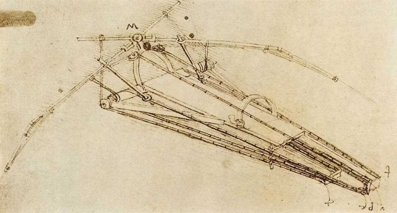 Увлекаясь идеей создания летательного аппарата, Леонардо да Винчи разработал сначала простейший аппарат (Дедала и Икара) на основе крыльев. Новой его идеей стал аэроплан с полным управлением. Однако ее воплотить в жизнь не удалось из-за отсутствия мотора. Также знаменитой идеей ученого является аппарат с вертикальным взлетом и посадкой.