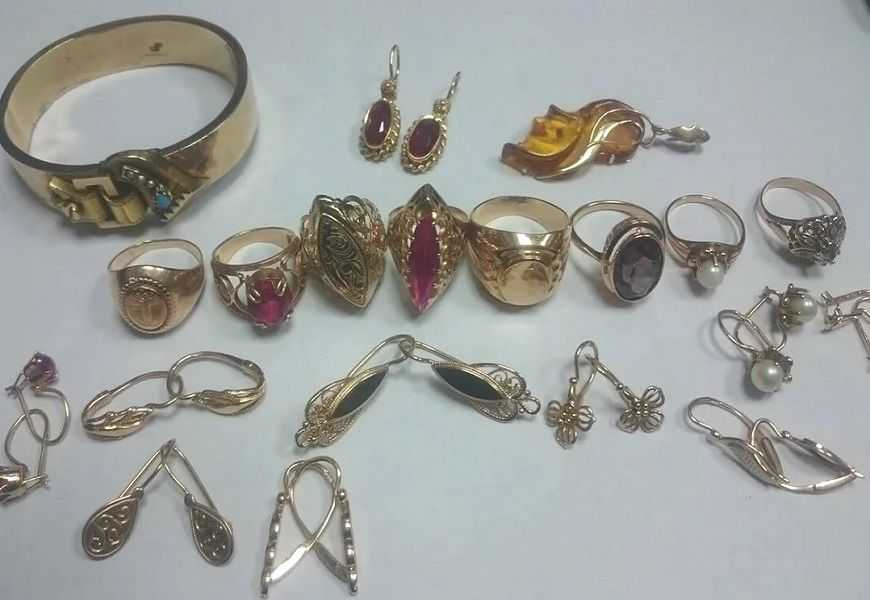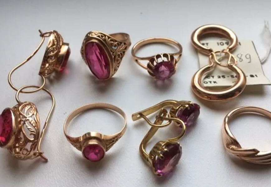 Советское золото 583 пробы, как и многие другие вещи той эпохи, отличались монументальностью, создавались на долгие годы. Это касалось и украшений. Серьги, цепочки, кольца, браслеты, часы, наборы украшений и др. – они соответствовали ГОСТу, технологический процесс производства не нарушался.