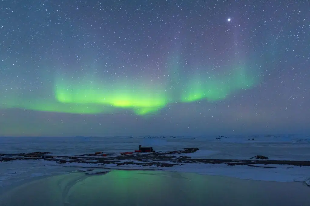 - Бывает ли сияние на Южном полюсе? Бывает так же часто, как и на Северном полюсе. Правда, там его увидеть сложнее из-за труднодоступности региона.