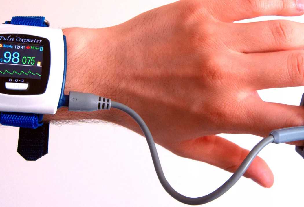 Самый надежный способ измерить сатурацию — использовать пульсоксиметр. Процесс совершенно безболезненный, не требует прокола и забора крови. Прибор надевается на палец или запястье, после чего светодиодный датчик испускает луч, проходящий через ткани. Степень поглощения света зависит от количества переносчика кислорода в крови — гемоглобина, и фотодетектор регистрирует изменения цвета крови в зависимости от насыщения ее кислородом. Усреднённое значение отображается на мониторе прибора. Более детально принцип действия пульсоксиметра был описан в наших предыдущих статьях .