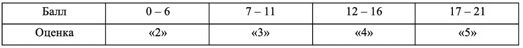 Таблица перевода баллов в оценки