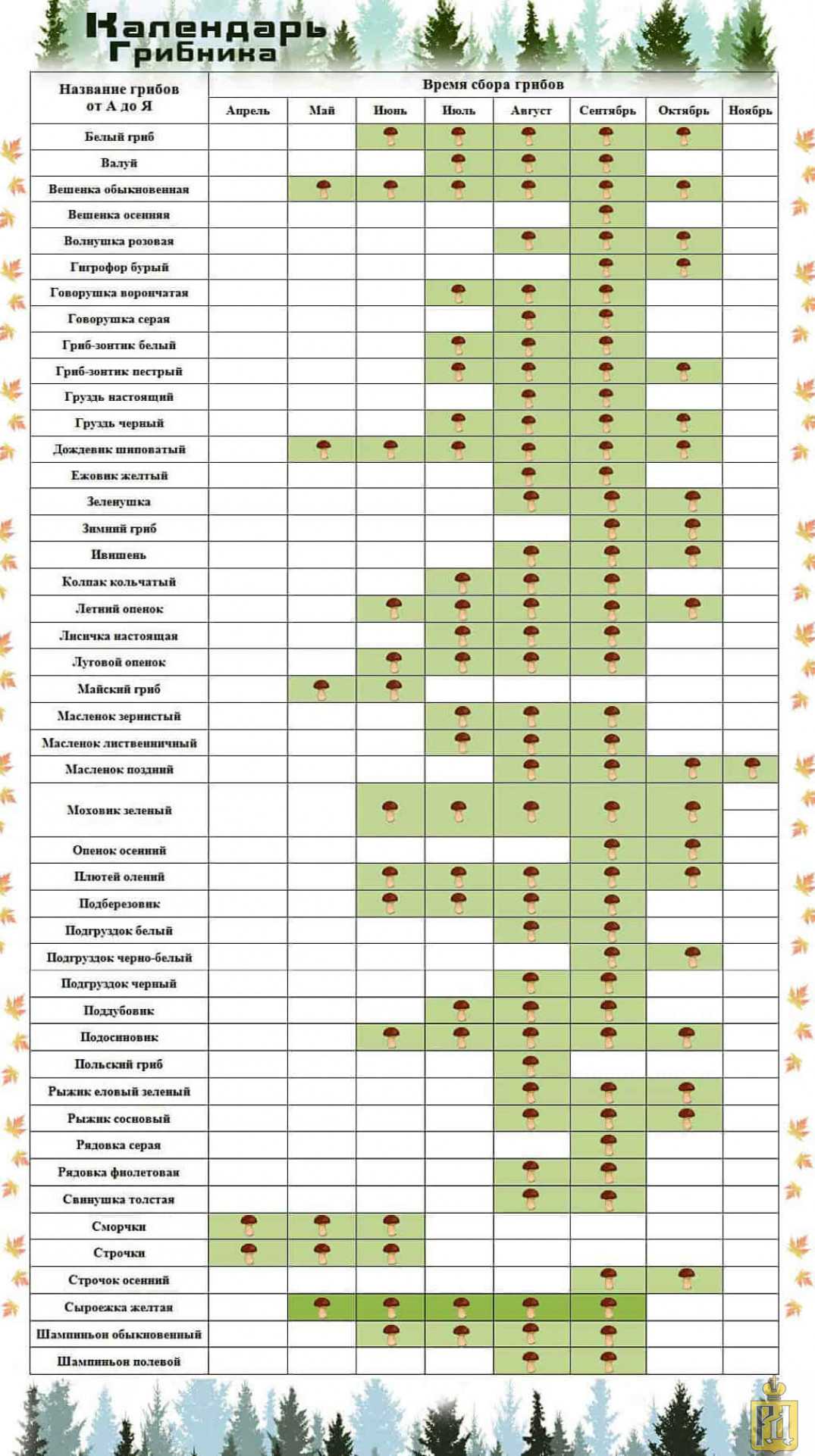 Календарь роста грибов по месяцам