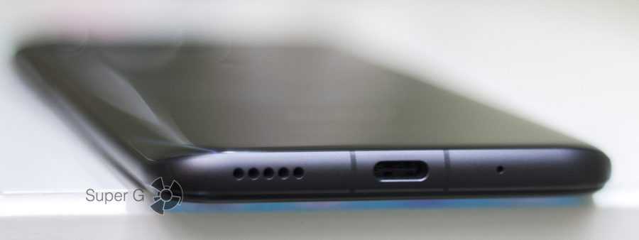 Современный разъем для зарядки USB Type-C находится по центру нижней грани. Рядом можно обнаружить основной динамик, разговорный микрофон и антенные полоски.
