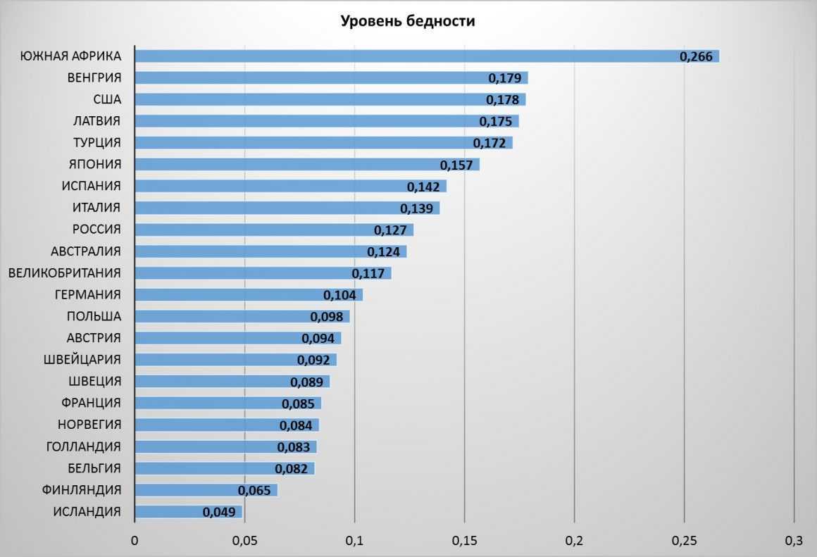 Уровень бедности по странам-участникам Организации экономического сотрудничества и развития (по данным https://www.oecd.org/)