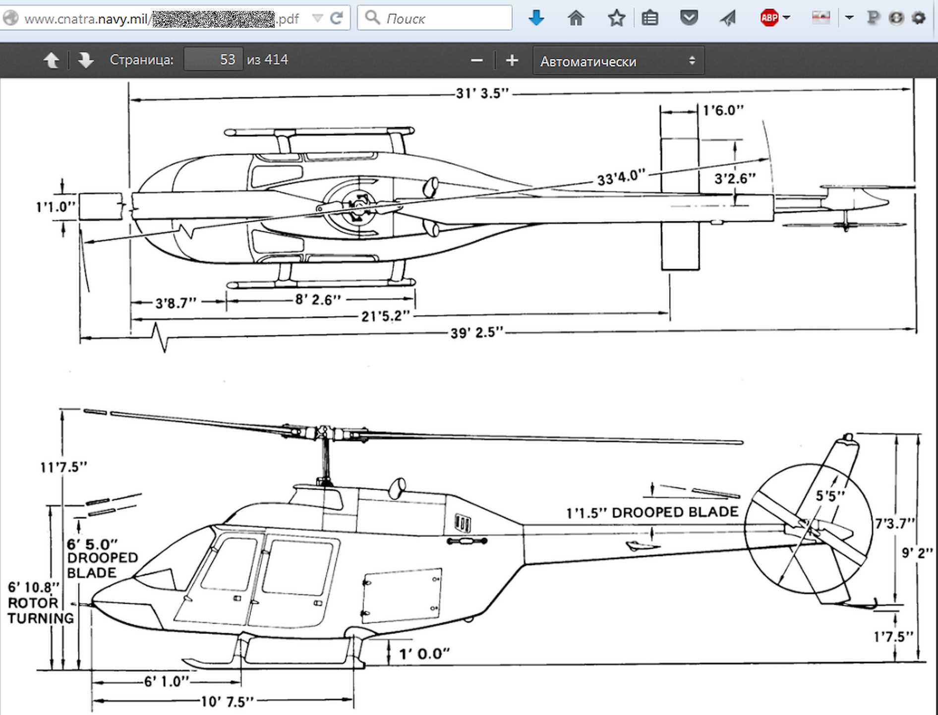 Чертеж из руководства к учебно-боевому вертолету TH-57С Sea Ranger
