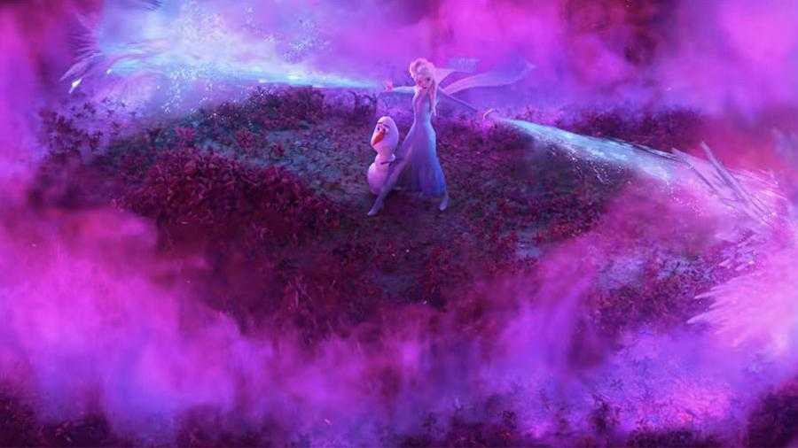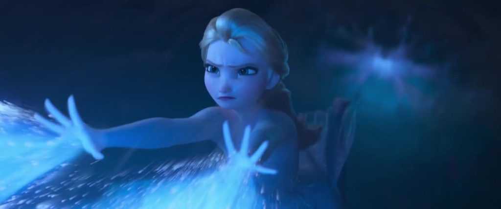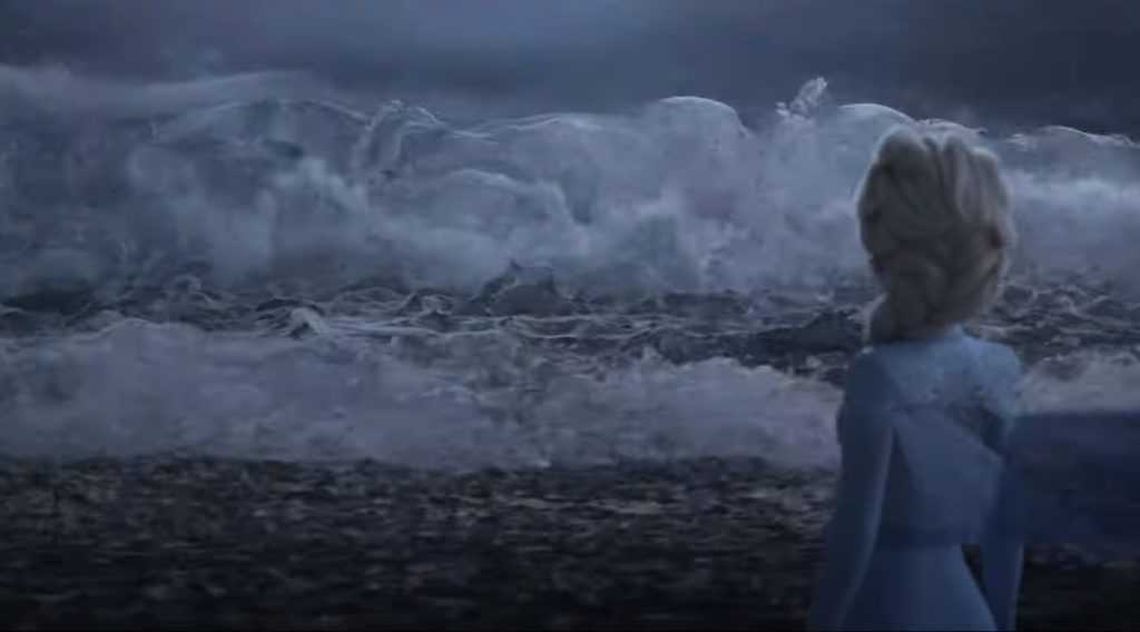 В одном из эпизодов трейлера она пускает все свои волшебные чары на борьбу со зловещим бушующим океаном. Эльза упорно пытается проложить путь через непримиримую стихию и видно, что ей обязательно нужно преодолеть гигантские волны.