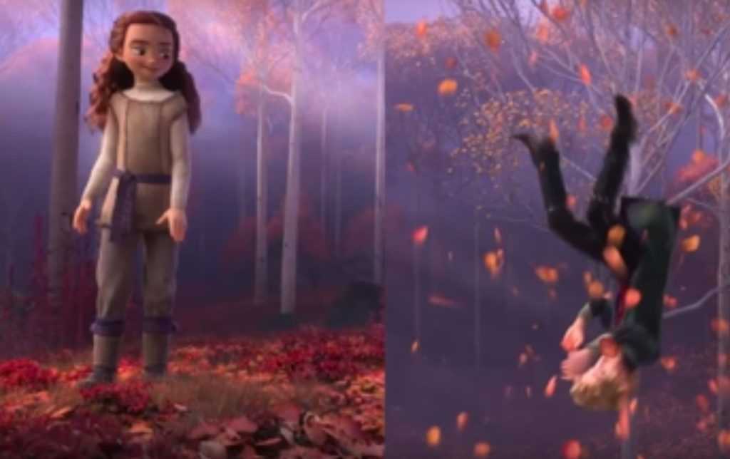 В тизере мы увидели все тех же главных и любимых всеми героев: Анну, Эльзу, Кристофа, Свена и Олафа. Помимо этого в нескольких сценах появились 2 новых героя: девочка, которая лихо закрутила мальчика в ворохе осенних листьев. Фанаты до сих пор ломают голову, кто же она такая, эта новая героиня.