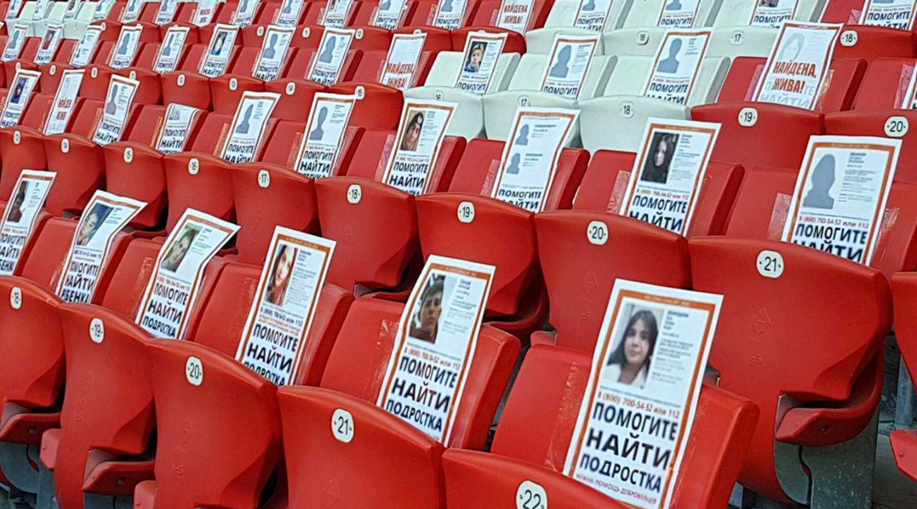 В этом году 25 мая, в День пропавших детей, мы оклеили спинки футбольного стадиона ориентировками на детей, которых мы вообще искали за десять лет существования нашего отряда. В итоге почти половина огромного стадиона, на котором сорок с лишним тысяч мест, оказалась заполненной фотографиями.