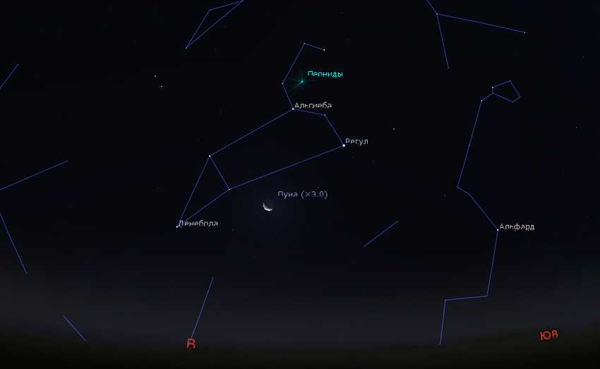Добавлю, что в этом году Луна не будет мешать наблюдениям, так как к моменту появления созвездия Льва на небе, уже зайдет за горизонт.