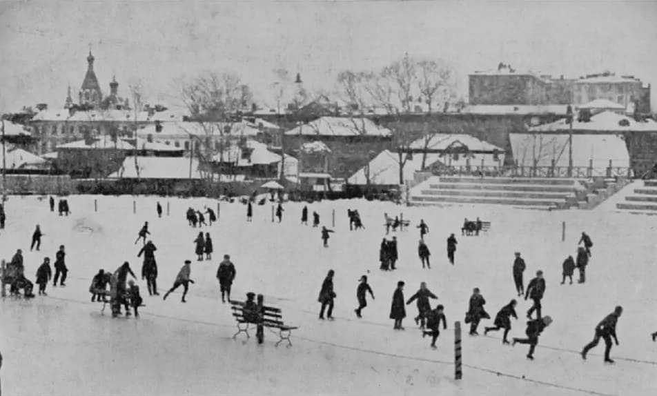 Центральный стадион Московского губернского совета профсоюзов. Крымская набережная, 6, 1927-28 год. Сейчас на этом месте – здание Новой Третьяковки