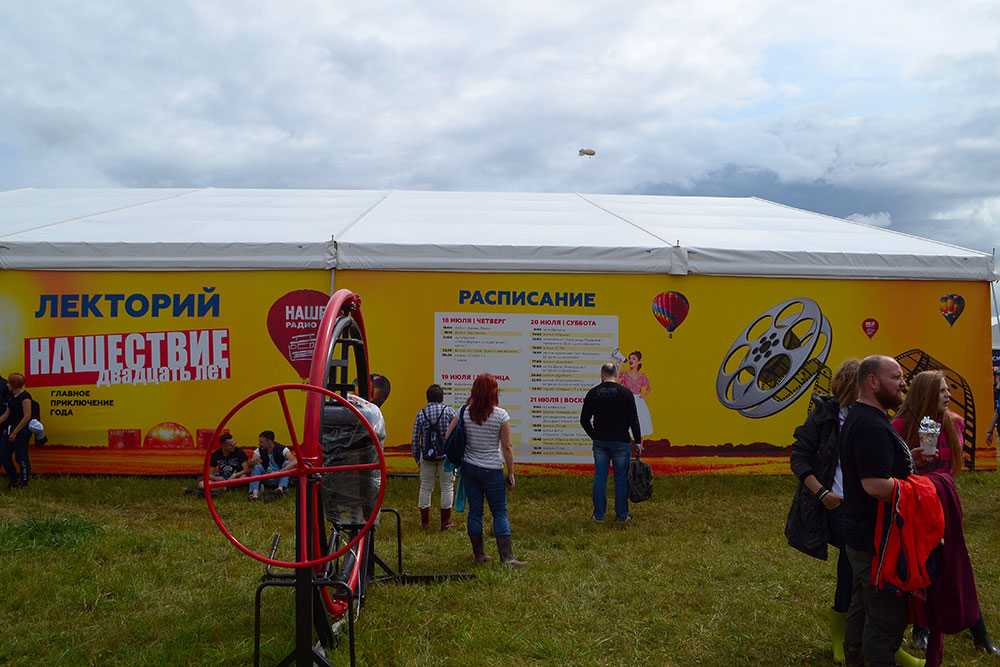 На Нашествии было ещё много всяких заморочек. Например, у кого есть карта банка Тинькофф, мог поучаствовать в конкурсах и выиграть разные призы и прогулку на воздушном шаре. Везде были ларьки с пивом, разной закуской, магазины с сувенирами.