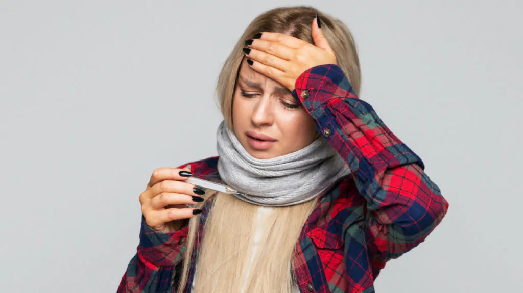 Температура повышается почти у всех больных. Это объясняется иммунной реакцией организма на вирус. Вырабатывается больше лейкоцитов, которые борются с инфекцией. С этим связаны многие симптомы: озноб, тошнота, головная боль, слабость и болезненность в мышцах.