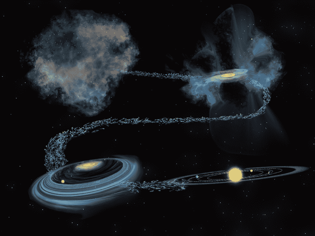Самой принимаемой в научном сообществе гипотезой о том, как появилась Солнечная система, является небулярная модель. Ее основная идея заключается в том, что наша звездная система сформировалась из газопылевого облака.