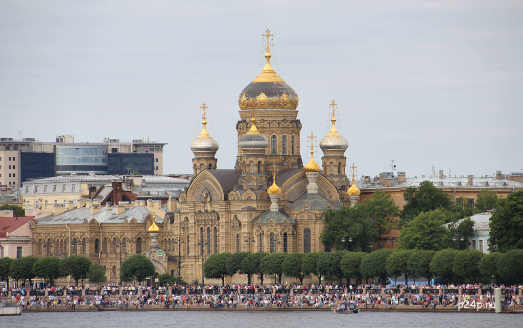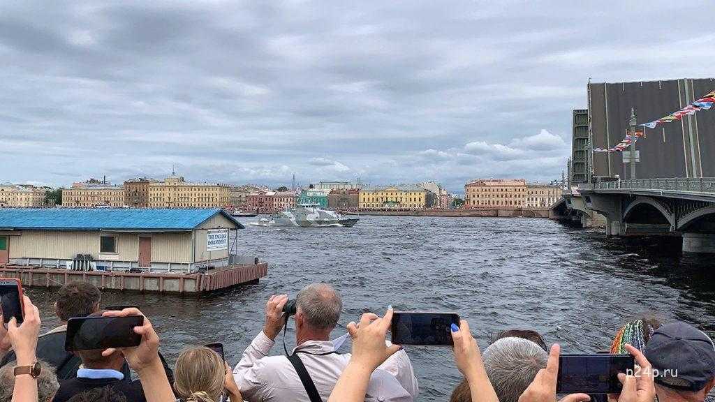 Вид на парад ВМФ с Английской набережной у Благовещенского моста
