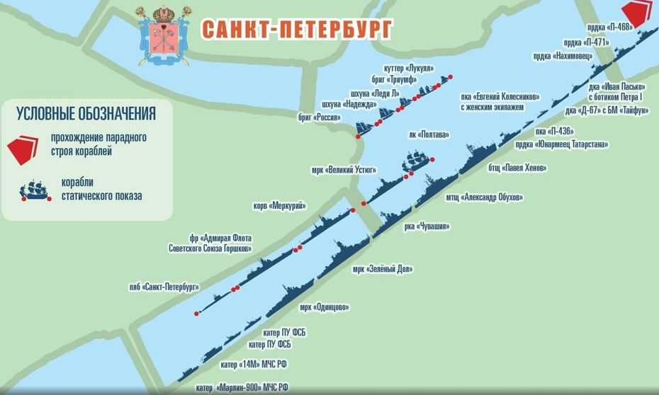 Cхема прохода кораблей на день ВМФ в Петербурге