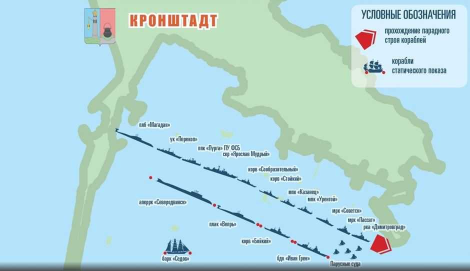 Cхема прохода кораблей на день ВМФ в Кронштадте