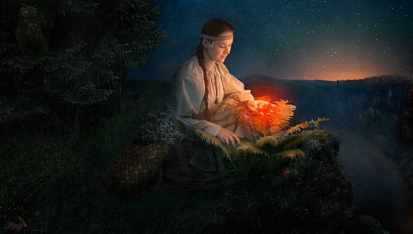 - Апофеозом праздника был поиск цветка папоротника, который якобы расцветал только в полночь и только на короткий миг.