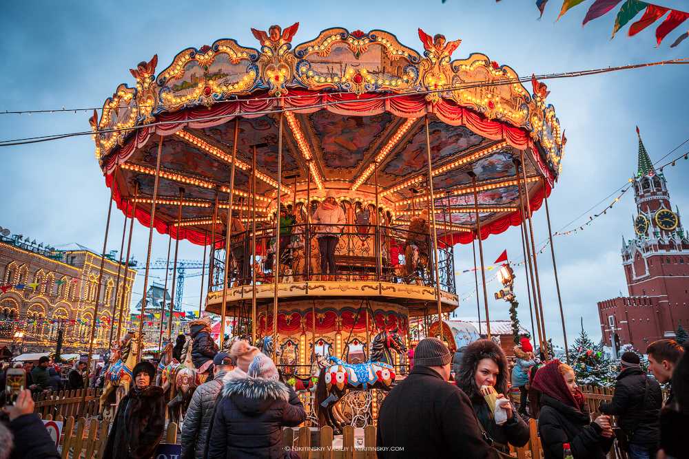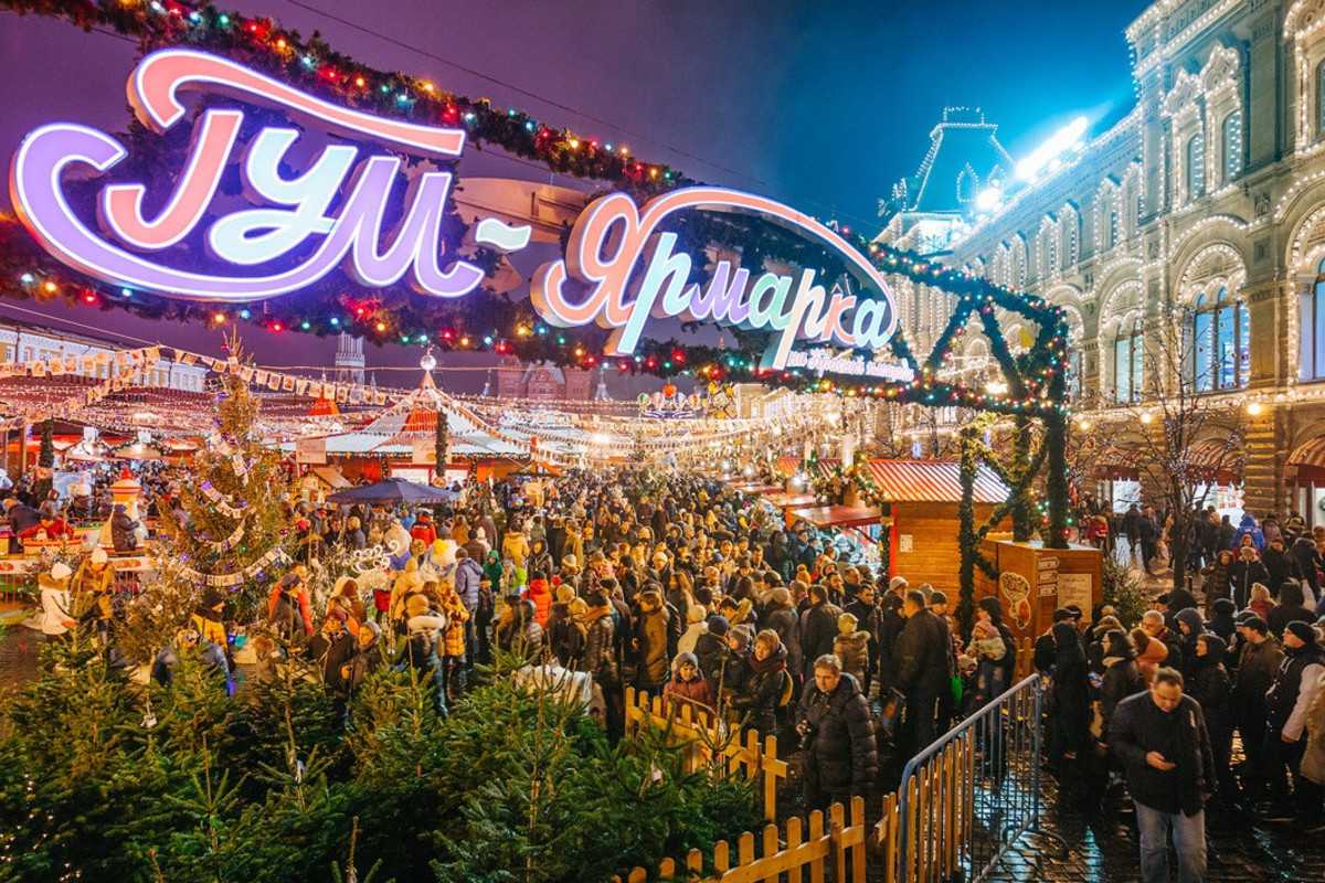 Зимой в Москве на главной площади откроется крупнейшая из ярмарок страны и будет работать несколько недель (01.12 – 18.01). Установлены тысячи павильонов с разнообразными товарами: сувениры, вкусная еда и украшения. Можно угоститься настоящей медовухой или согреться глинтвейном, поесть блинов, а ночью увидеть грандиозный салют.