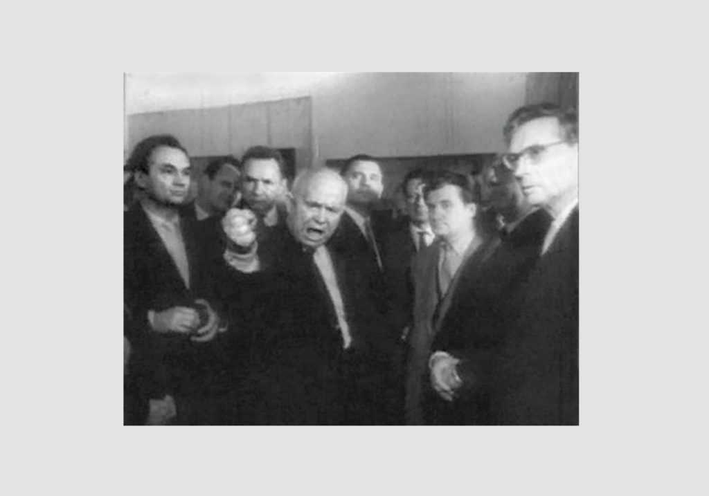 Хрущев критикует художников. Кадр из телепередачи «Намедни. Наша эра»