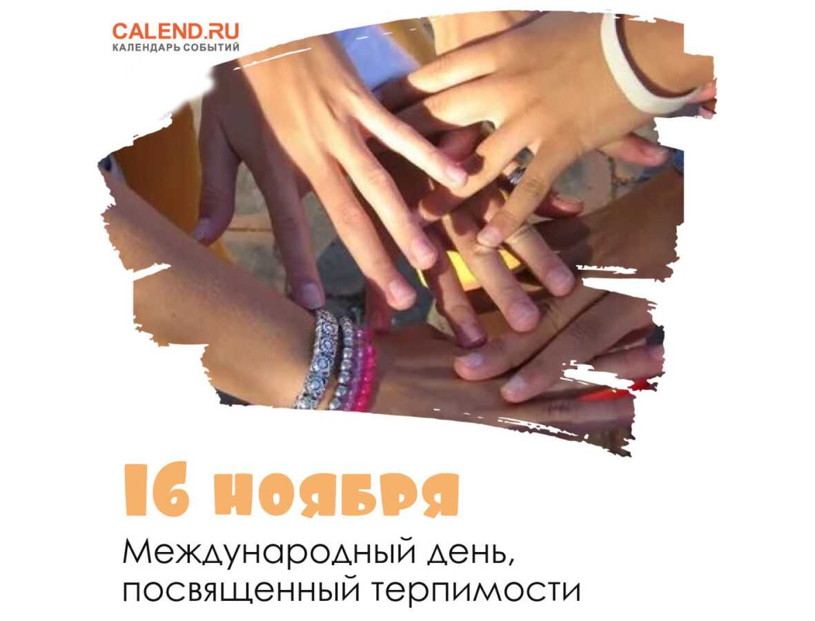 Узнать подробнее о каждом из перечисленных в нашем списке событий дня вы можете в ежедневной сводке Calend.ru «16 ноября — этот день в истории». Всего на ноябрь 2021 года приходится 231 праздник, из них только в России отмечается 32 государственных праздника. Полный перечень праздников месяца смотрите на странице Calend.ru «Праздники ноября 2021». Праздники декабря можно посмотреть здесь. Если вас интересуют православные праздники, смотрите нашу специальную подборку «Календарь православных праздников на 2021 год».