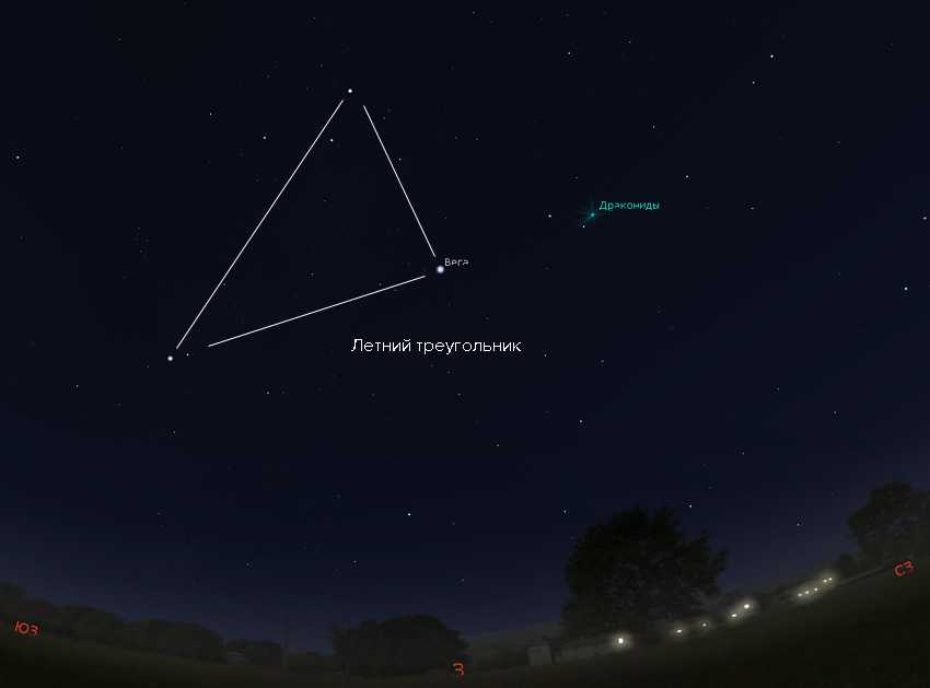 Обратите внимание, что данный поток, образованный кометой 21P/Джакобини-Циннера, лучше наблюдать именно вечером, а не глубокой ночью. Звездопад не будет обильным, можно будет наблюдать до 10-20 метеоров в час